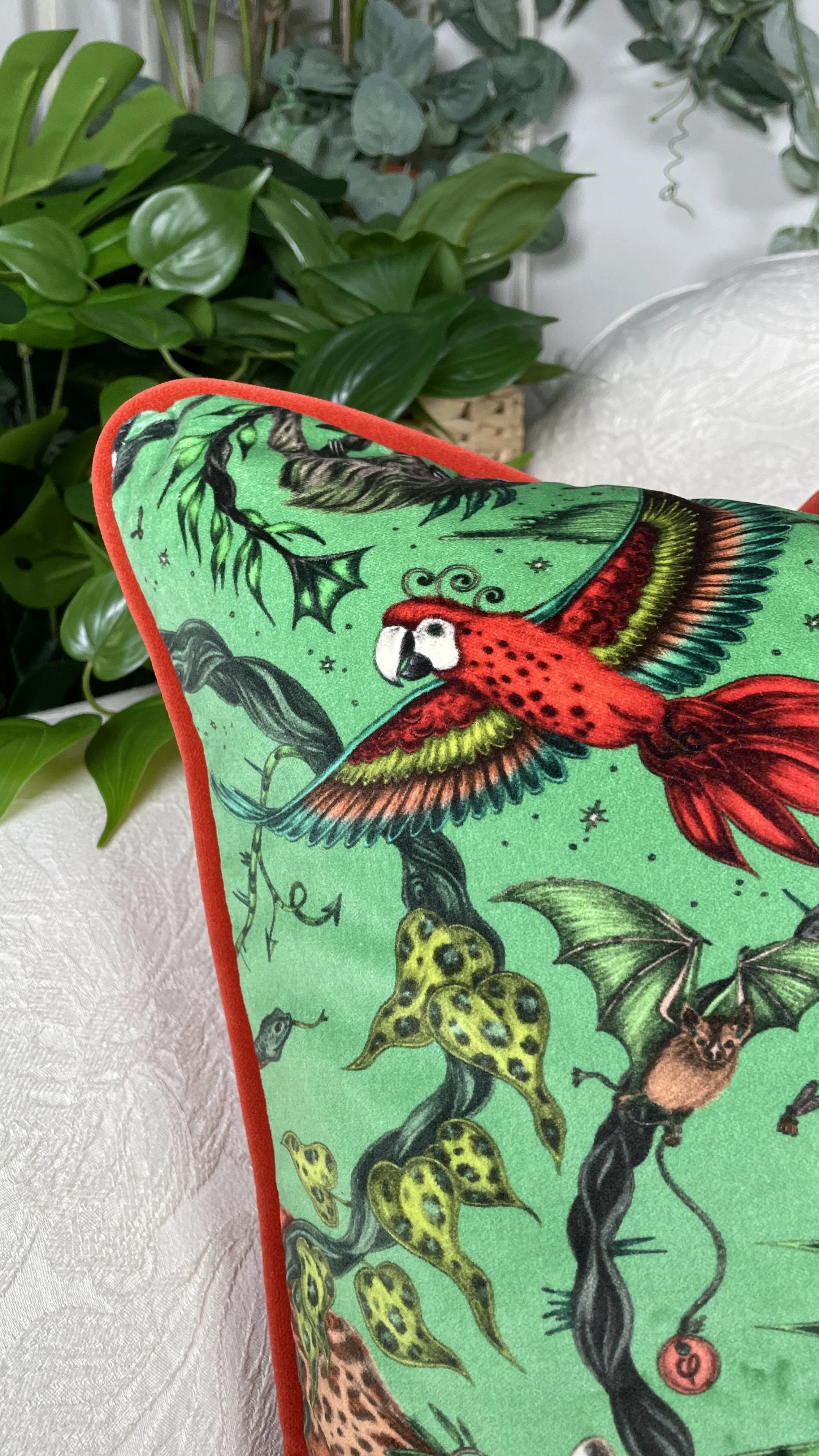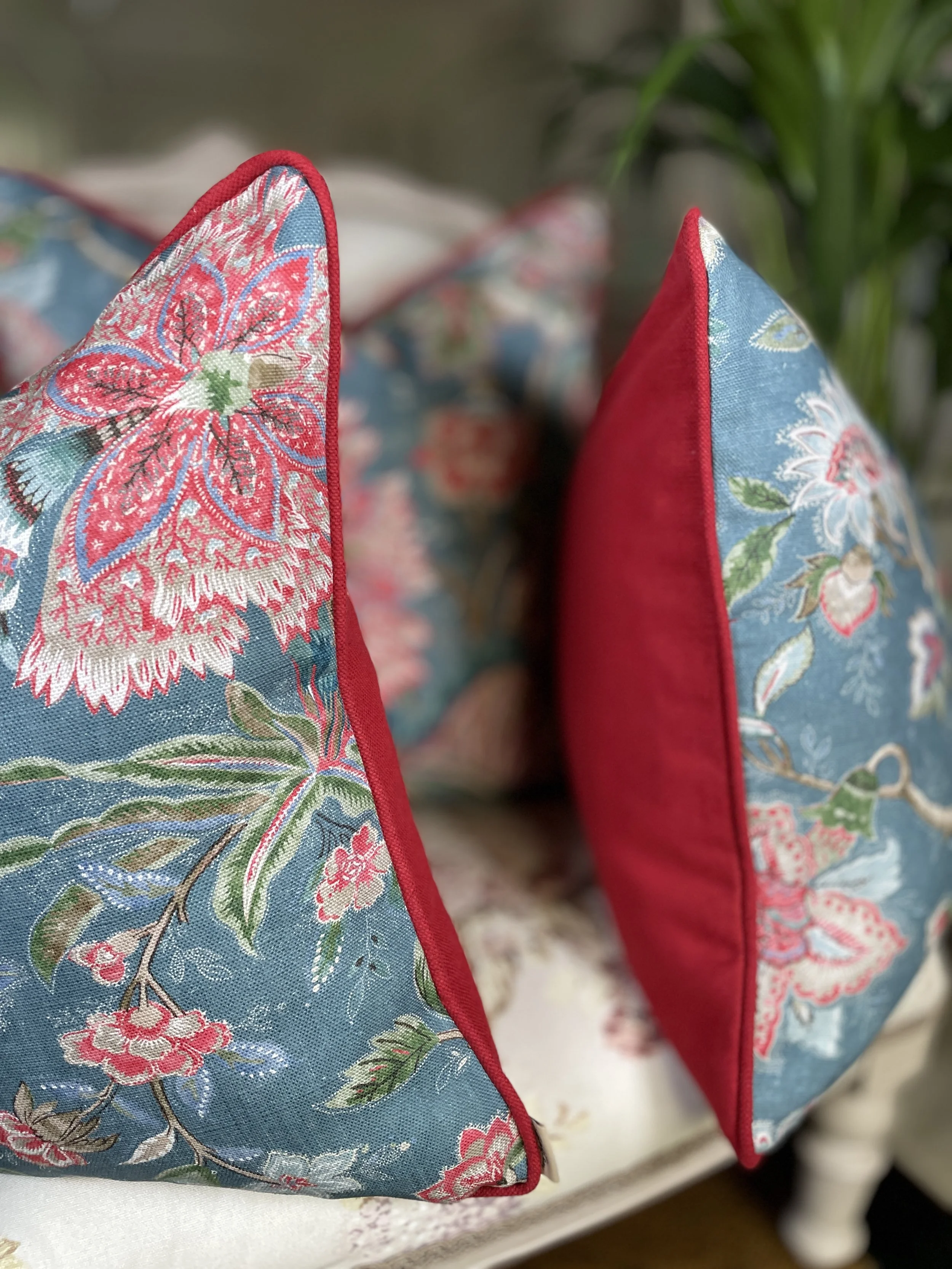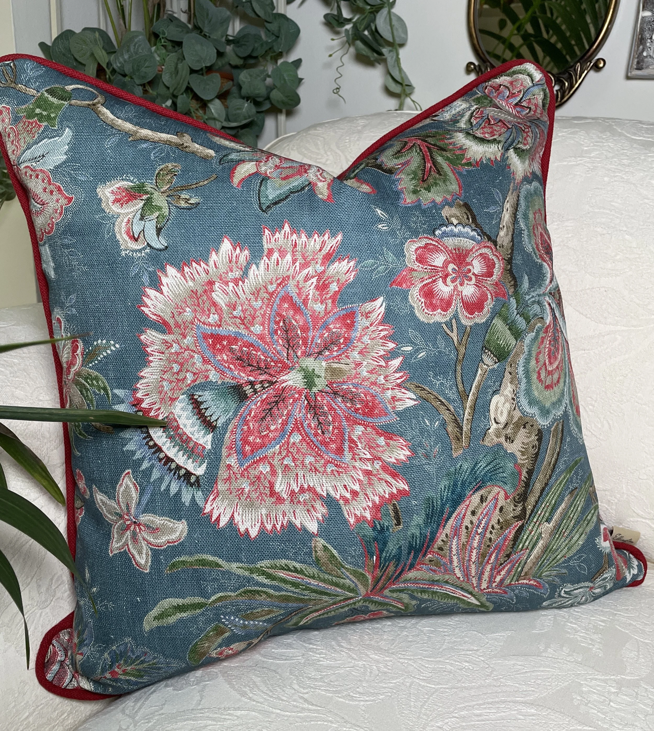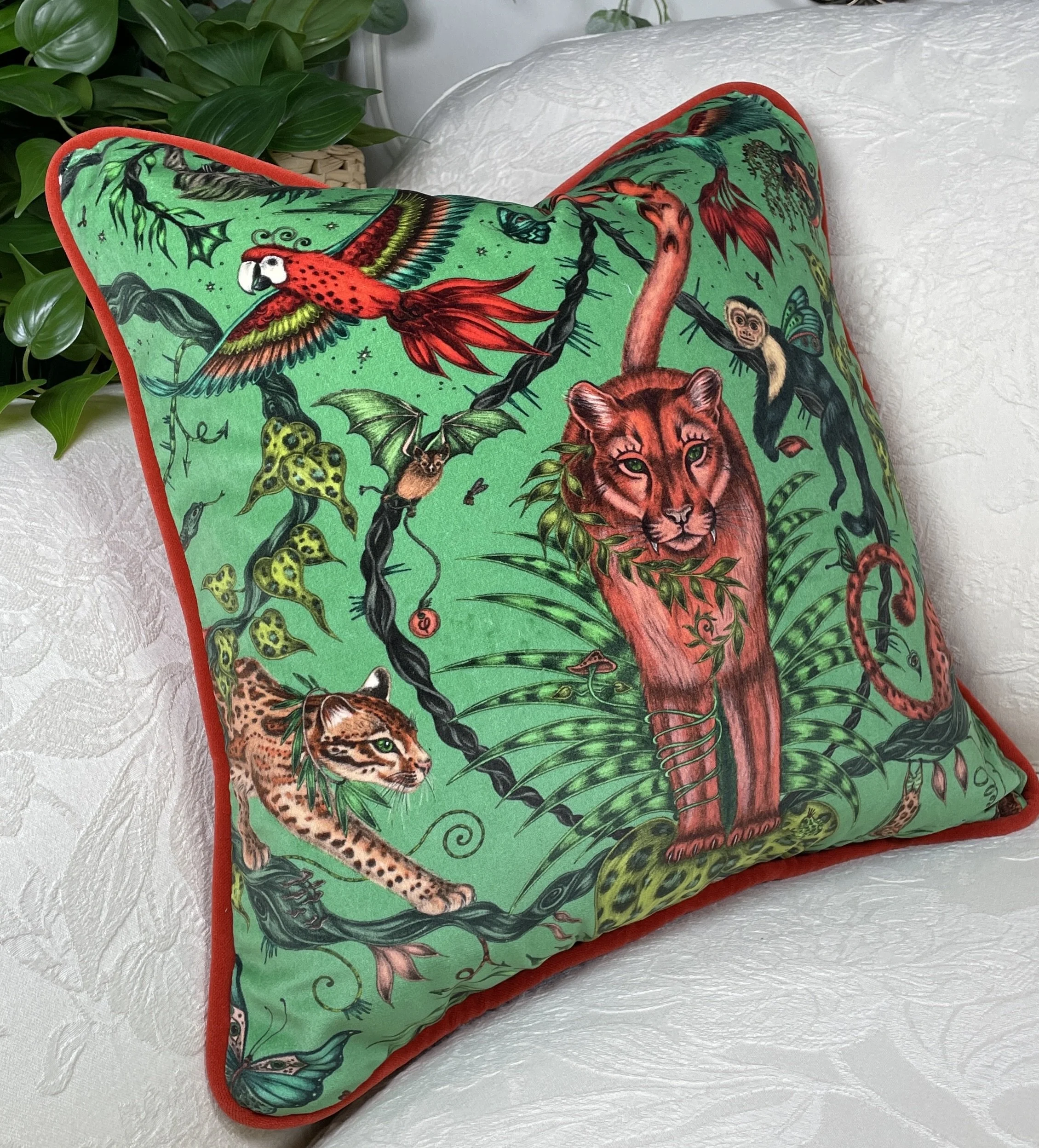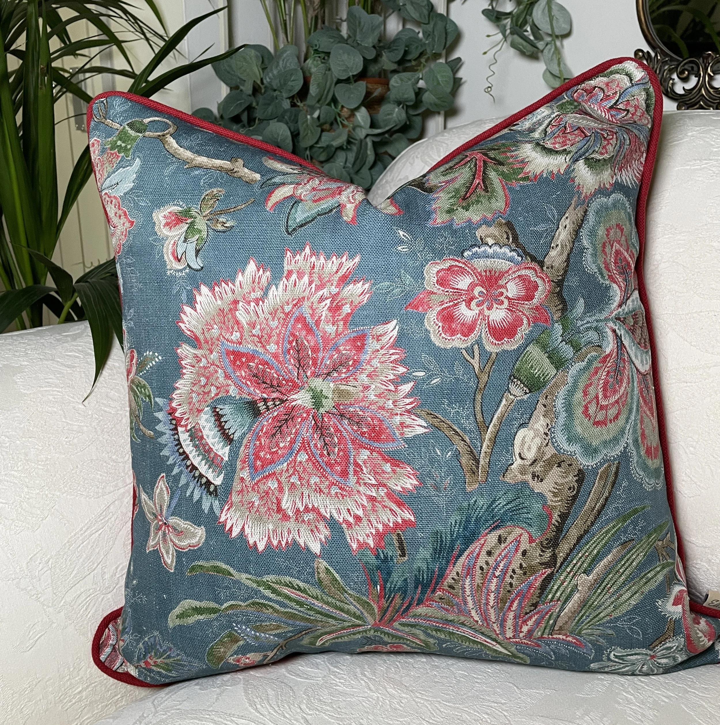Emma Shipley Extinct Magenta Piped Cushion with Velvet reverse and piping (50cm x 50cm)