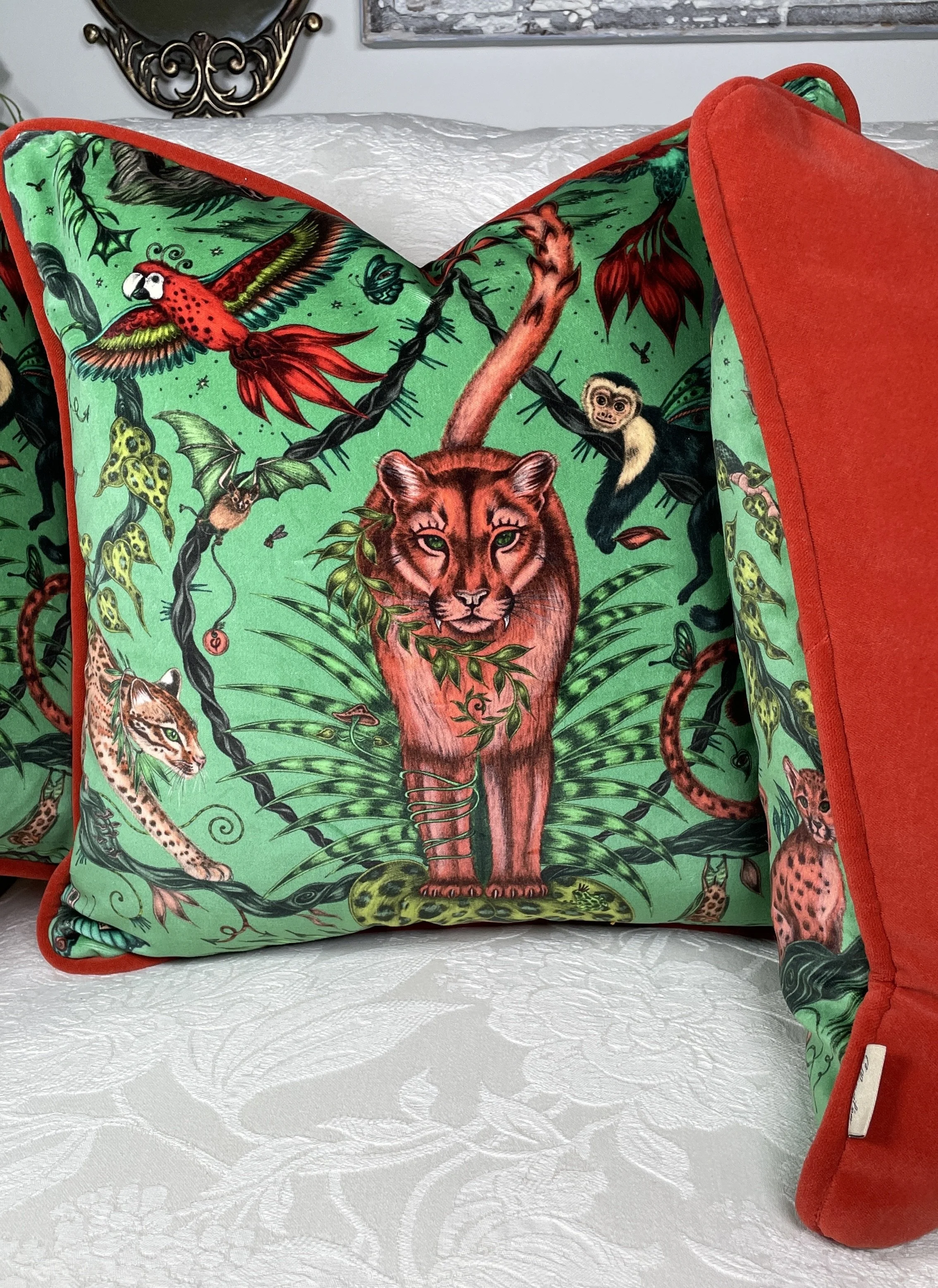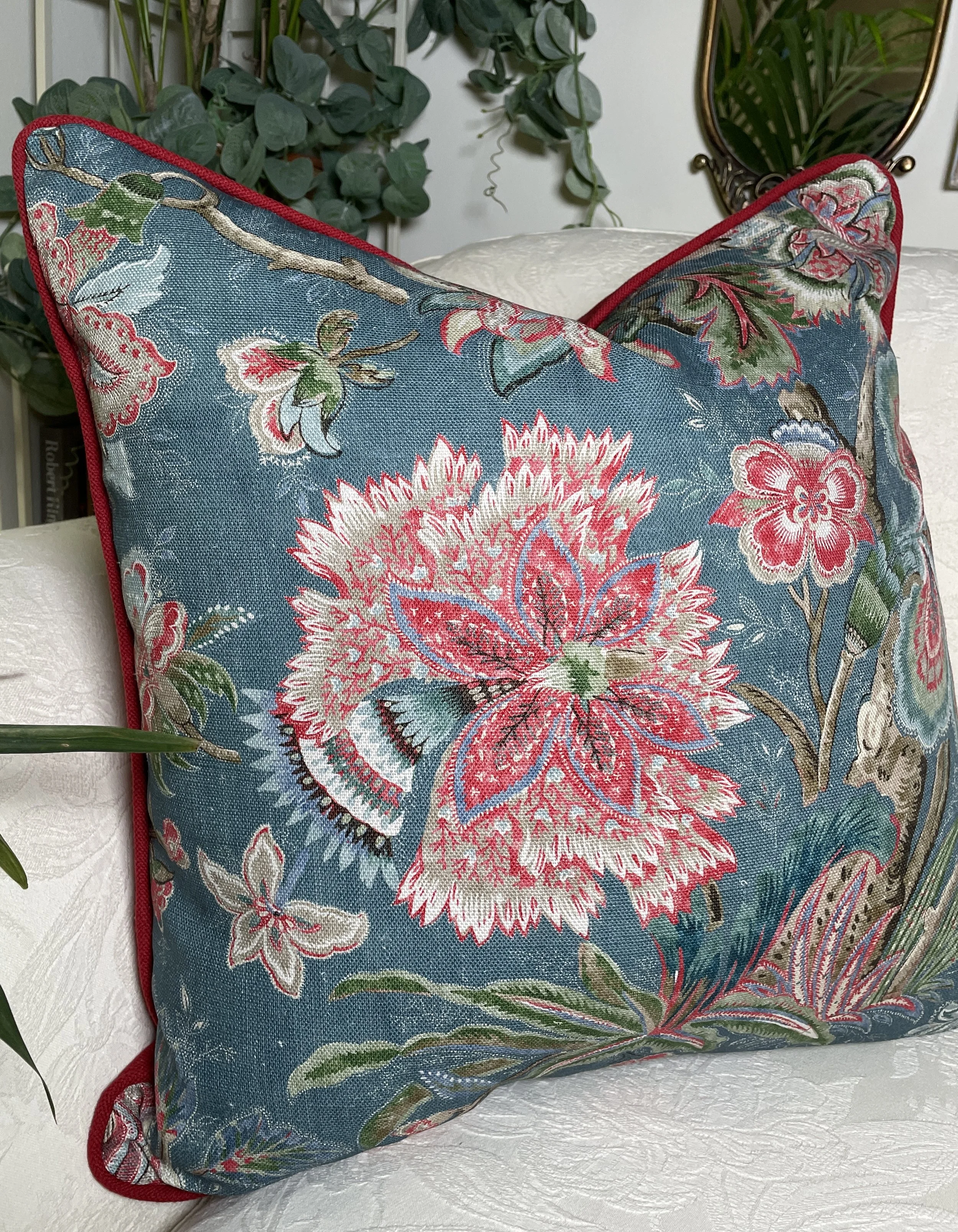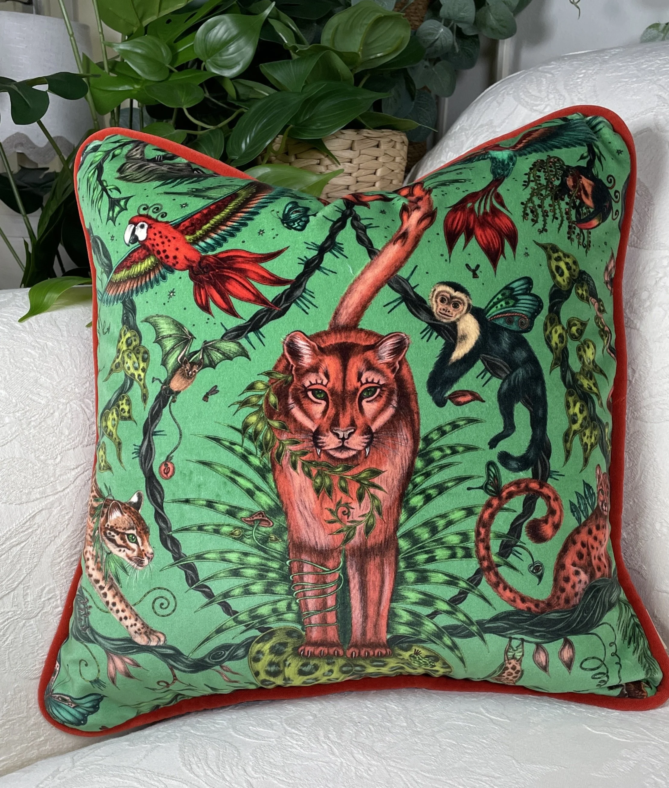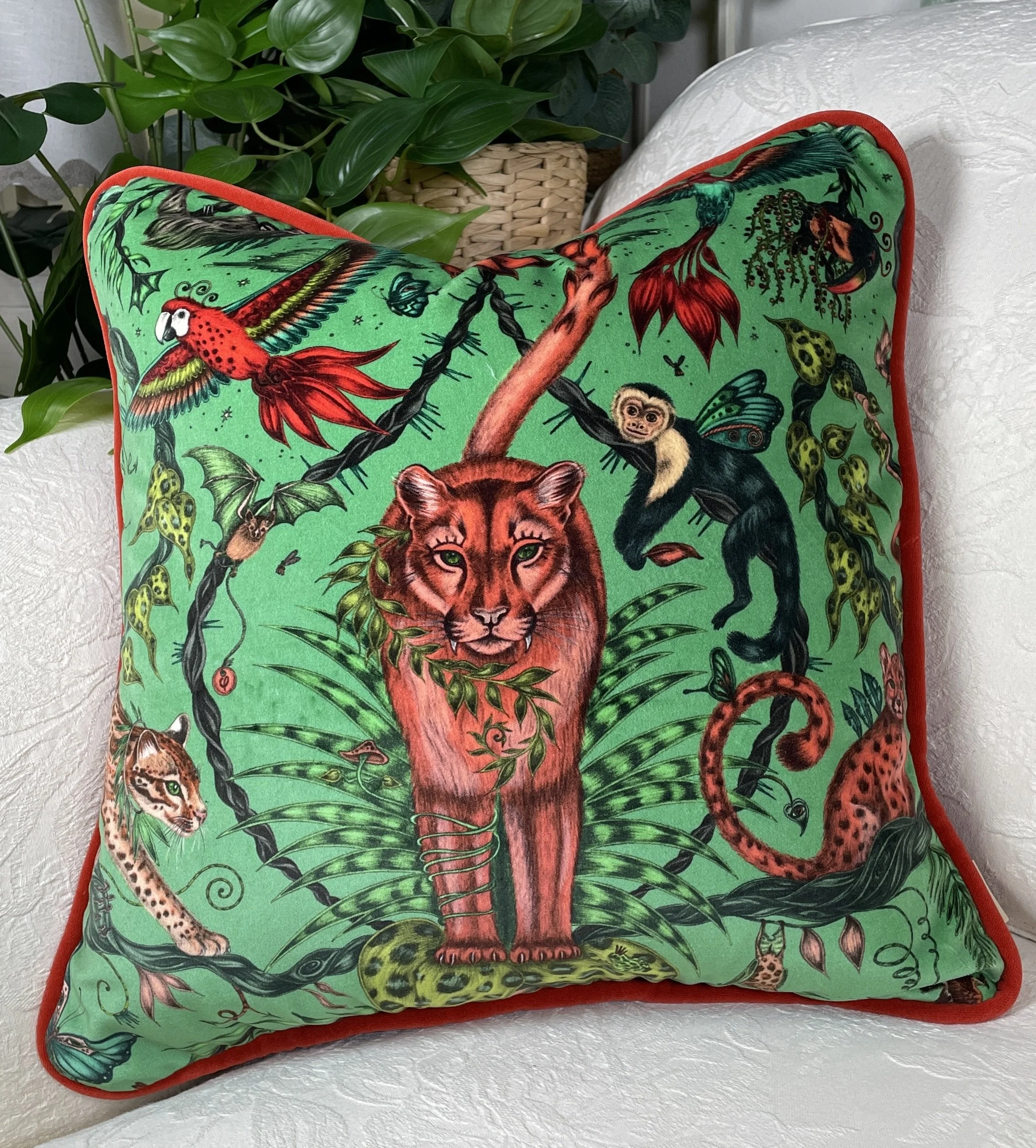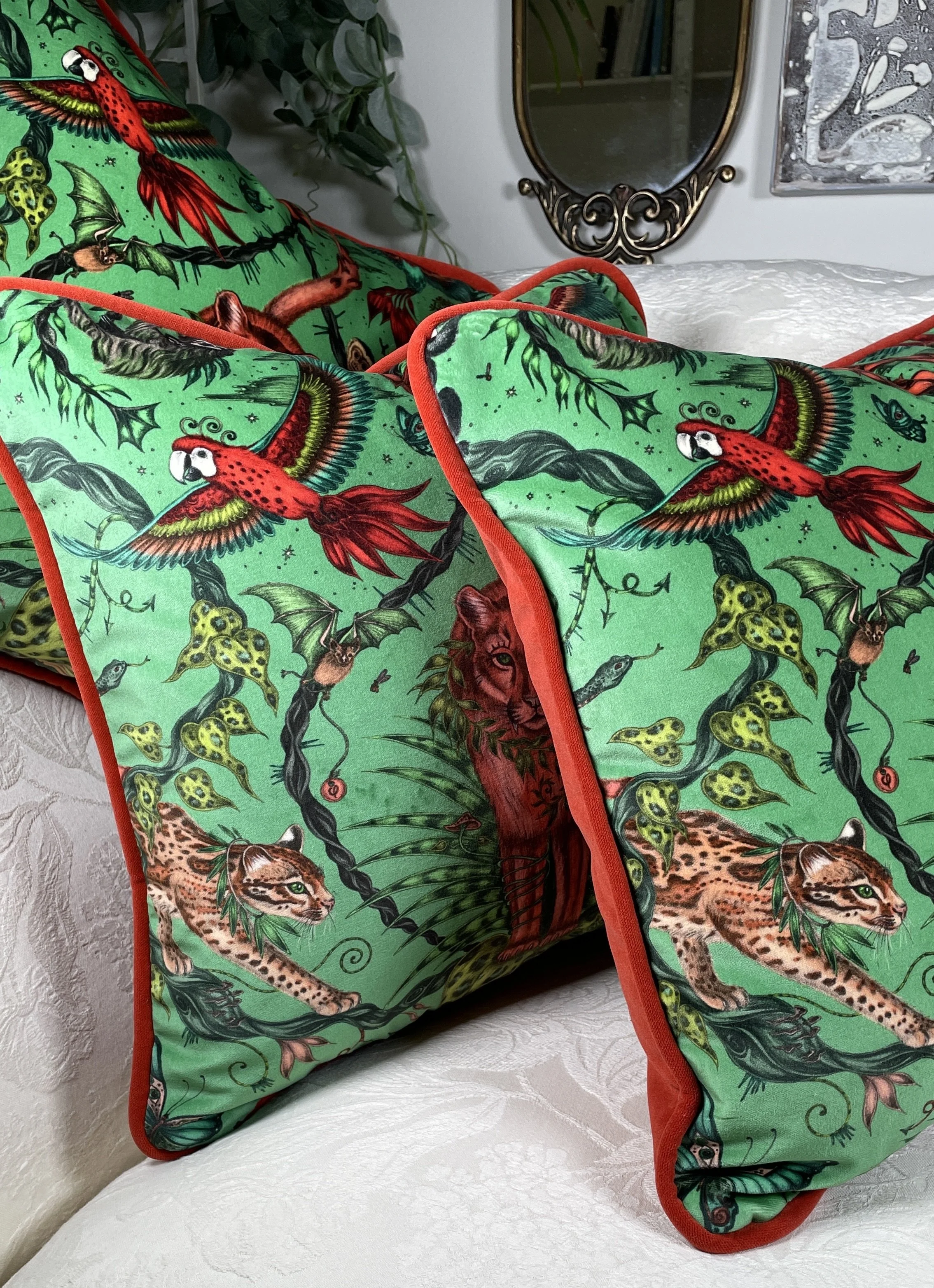 Emma Shipley Extinct Magenta Piped Cushion with Velvet reverse and piping (50cm x 50cm)