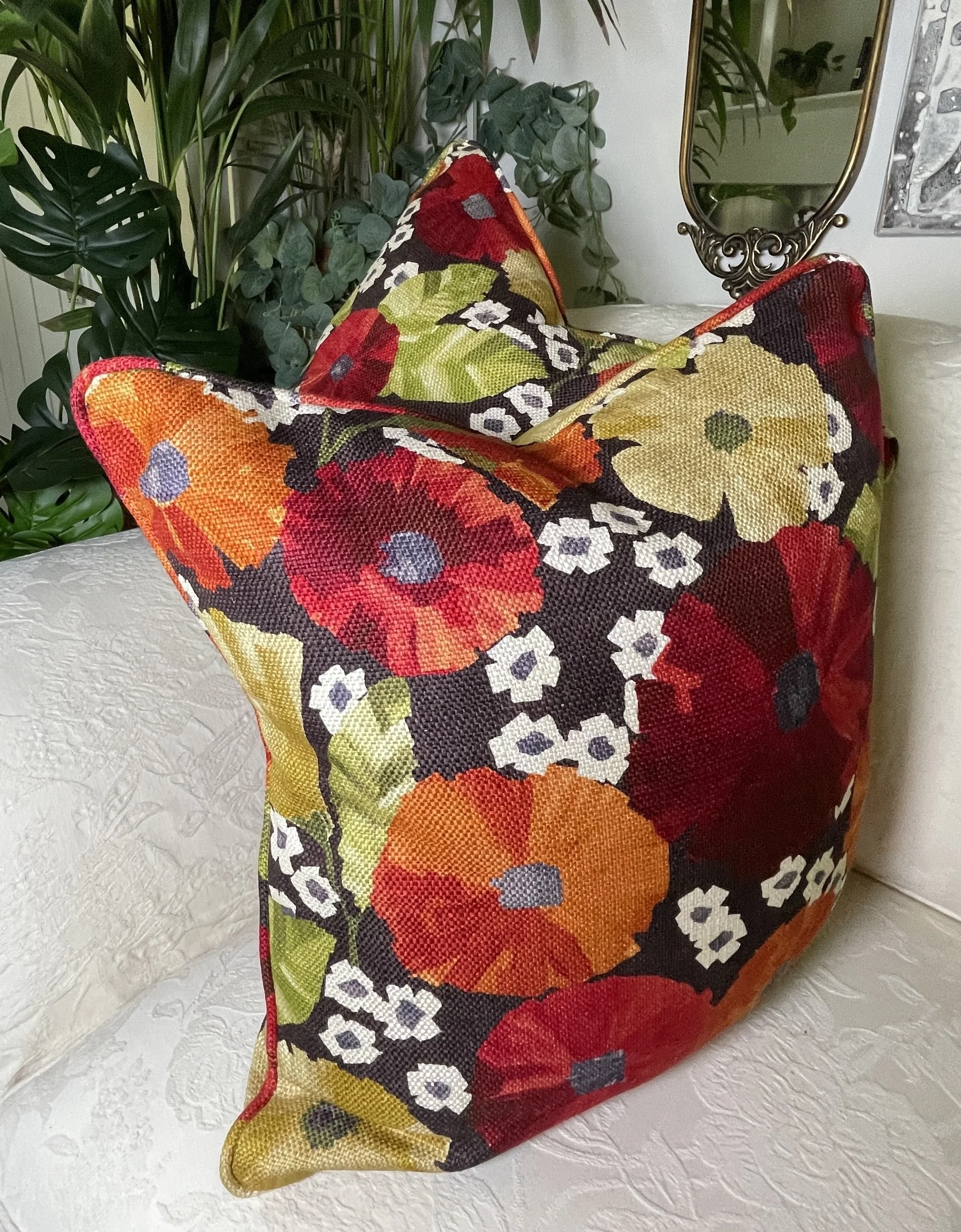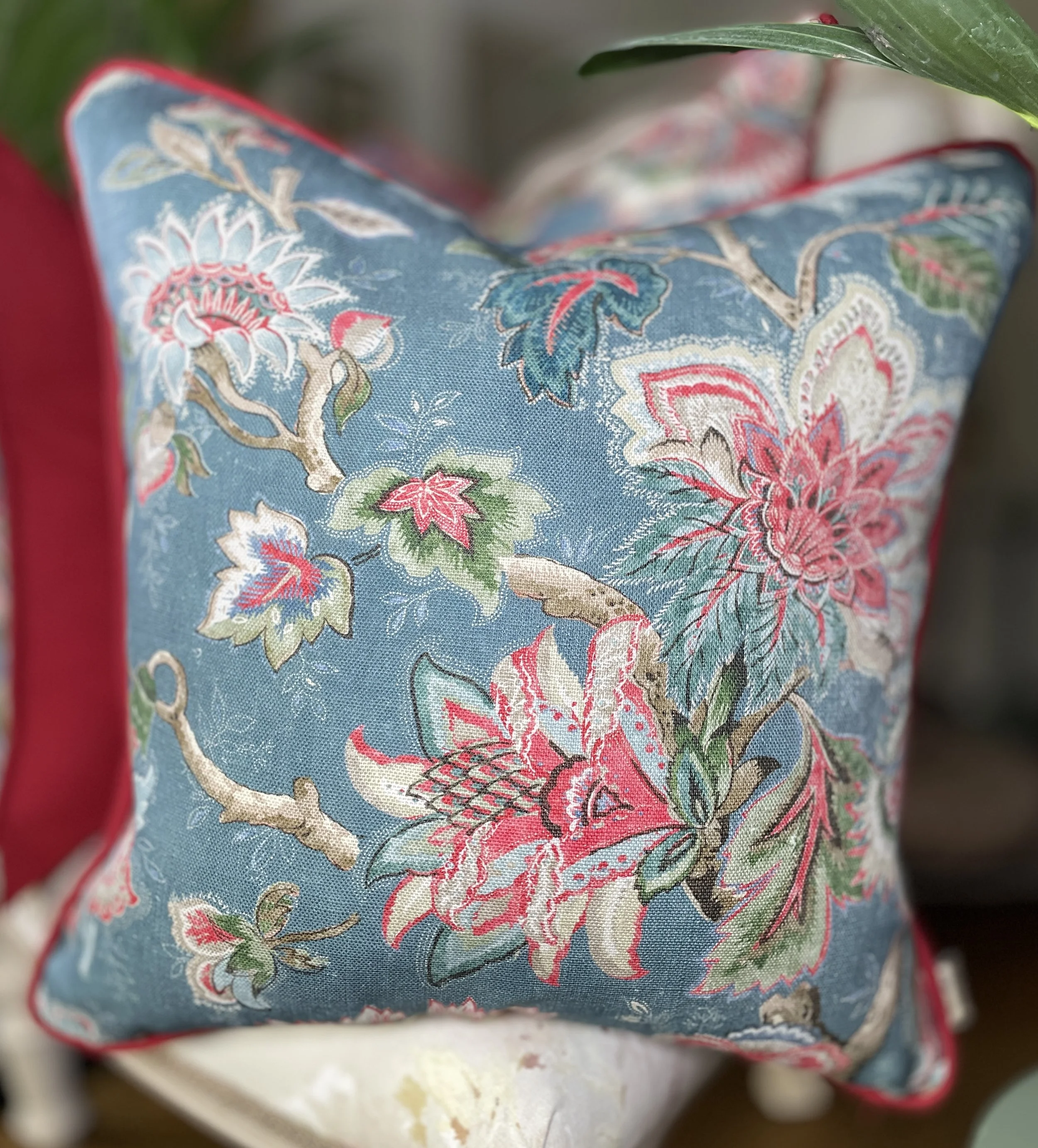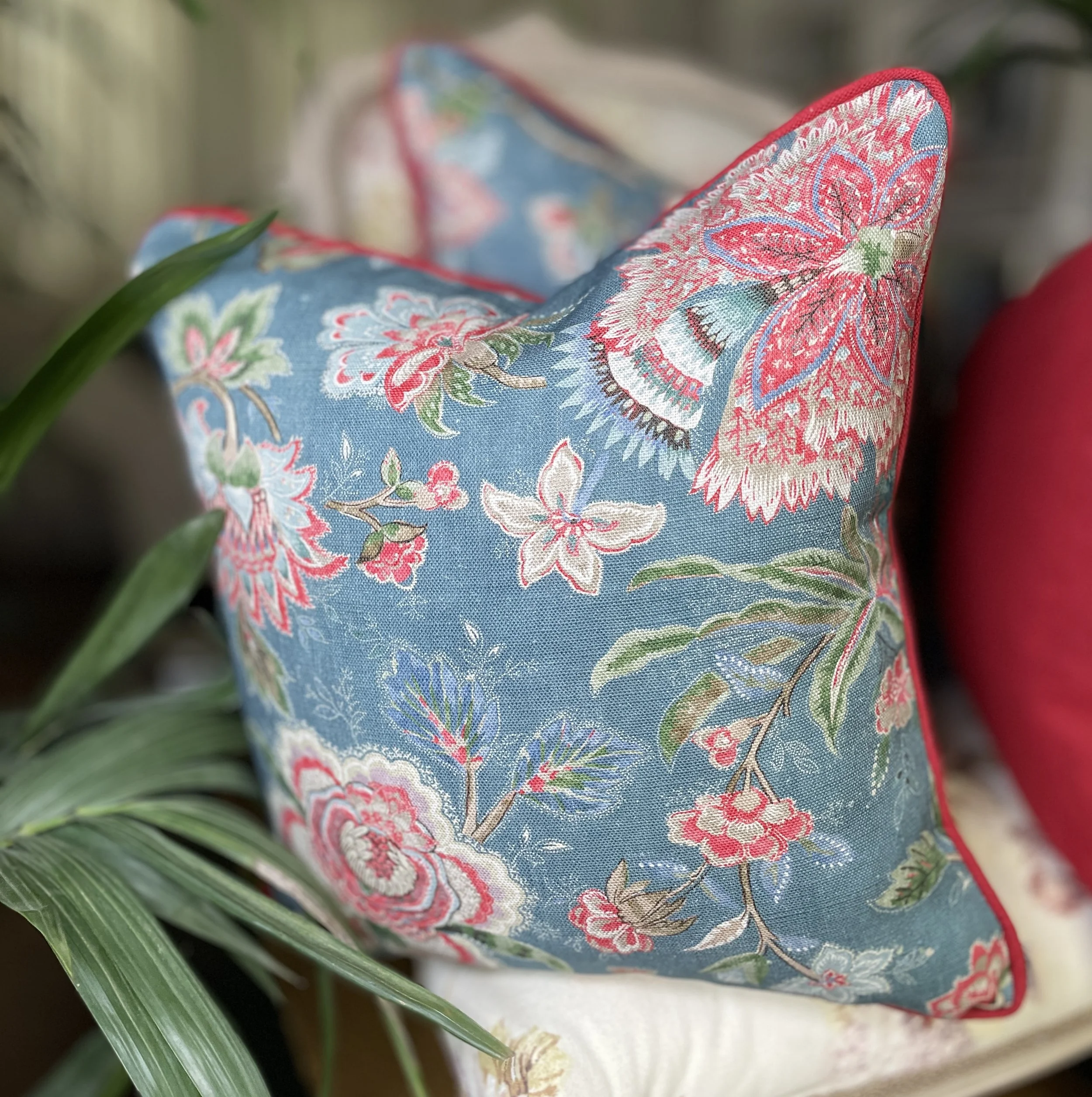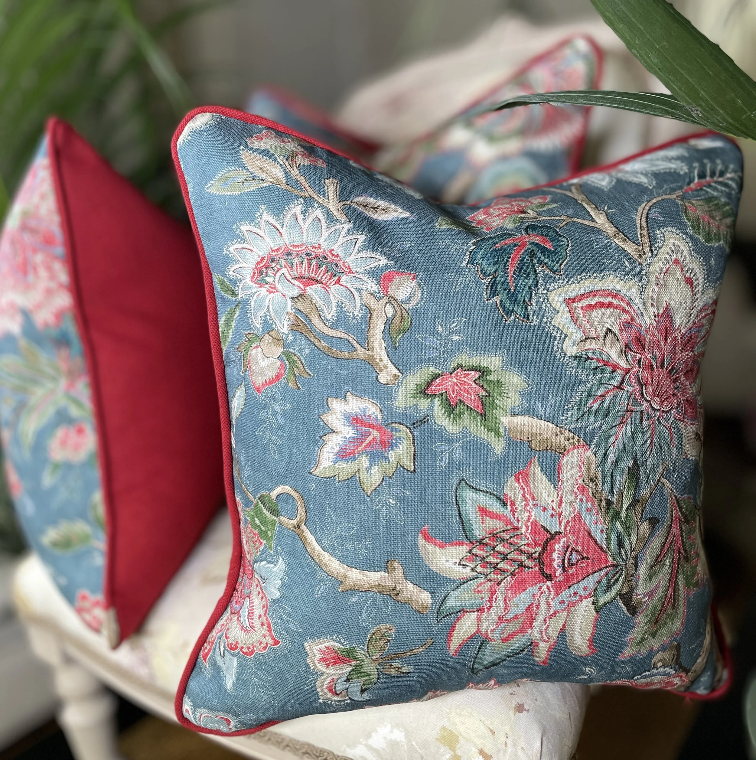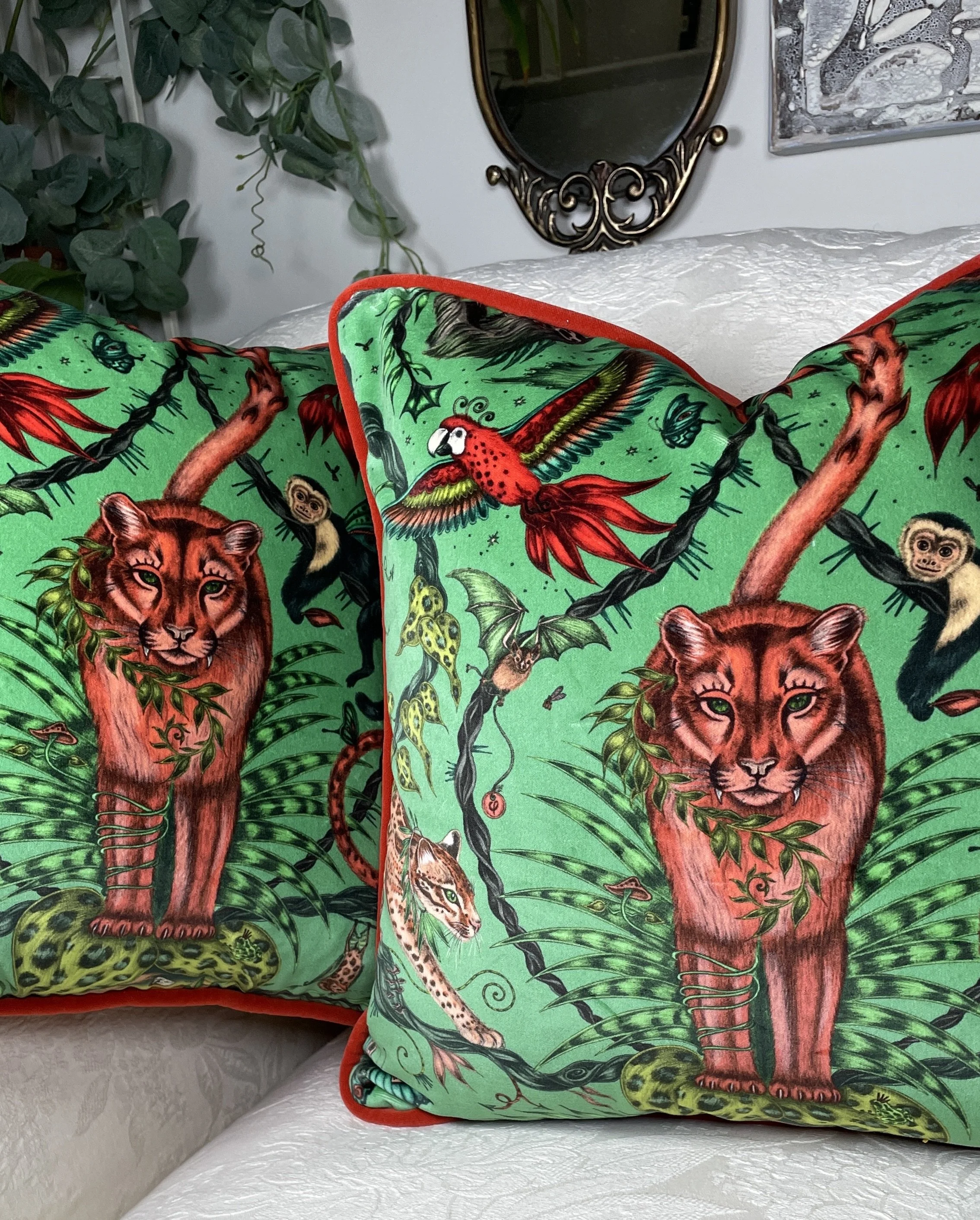 Emma Shipley Extinct Magenta Piped Cushion with Velvet reverse and piping (50cm x 50cm)