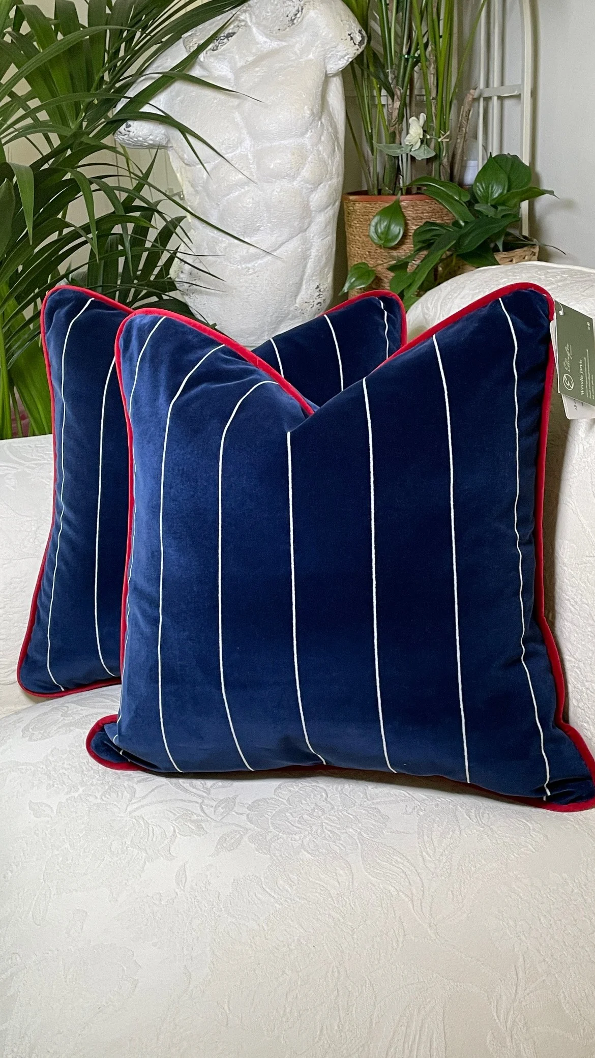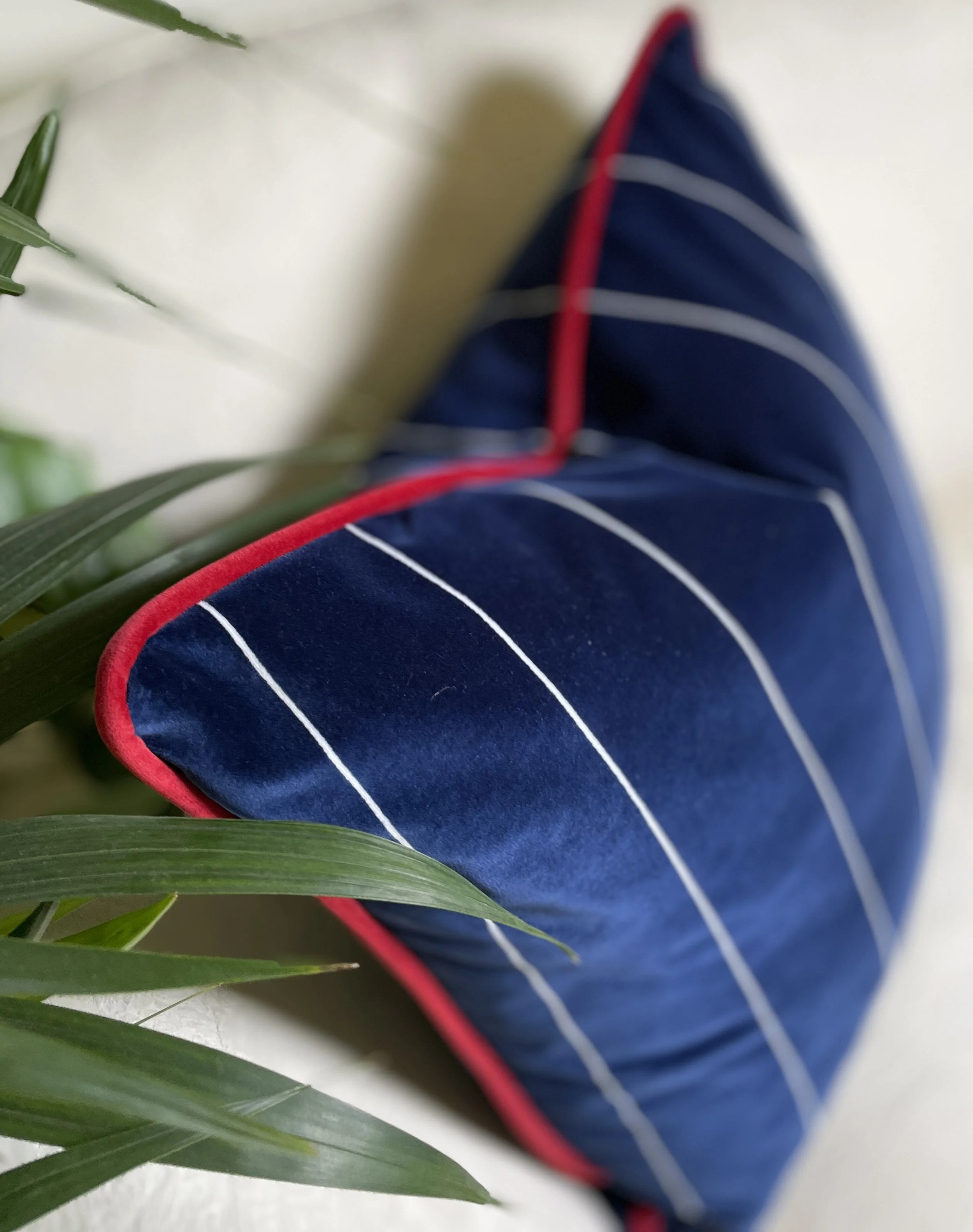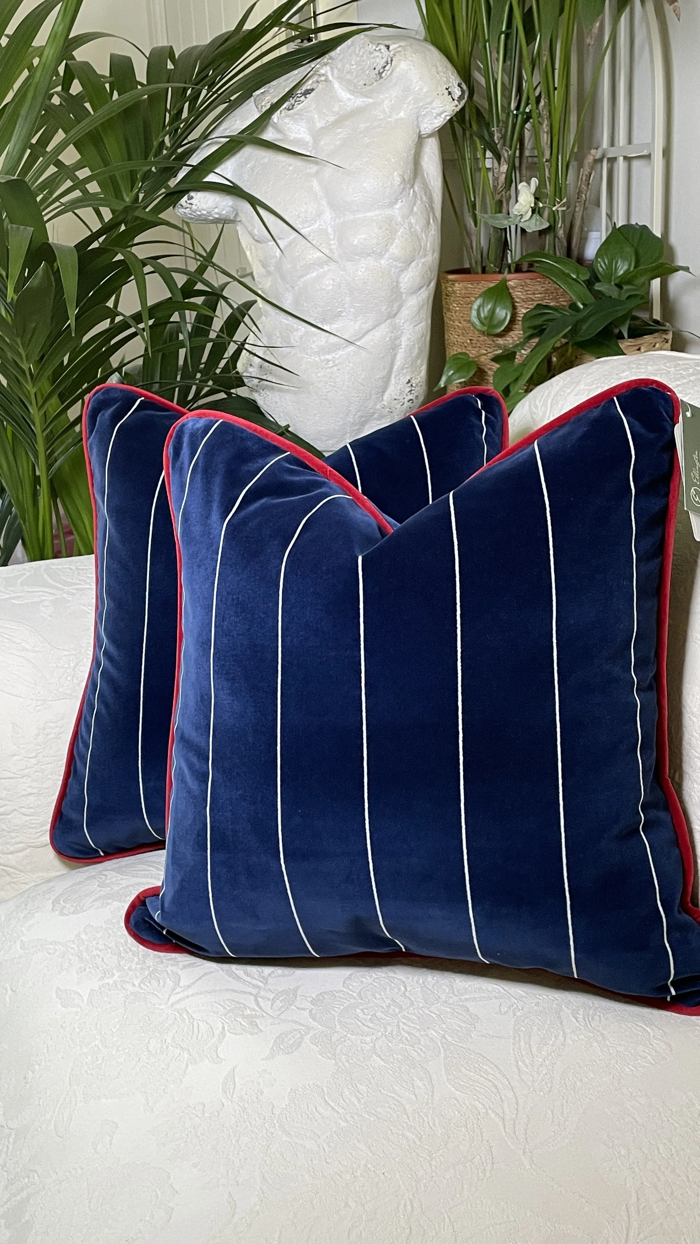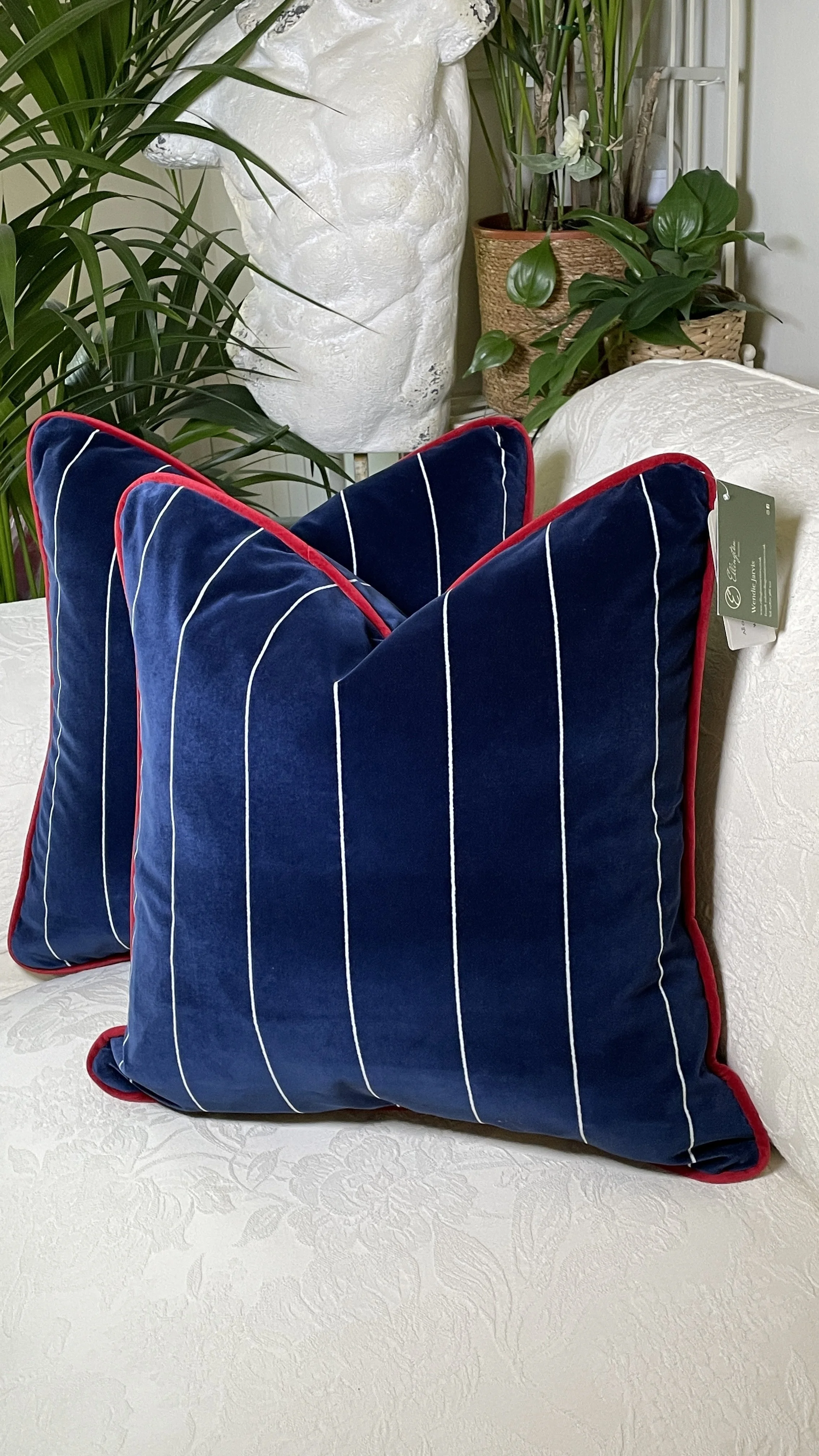 ROMO Eston 'Oxford Blue' Feather Filled Piped & Zipped Cushion (50cm x 50cm)