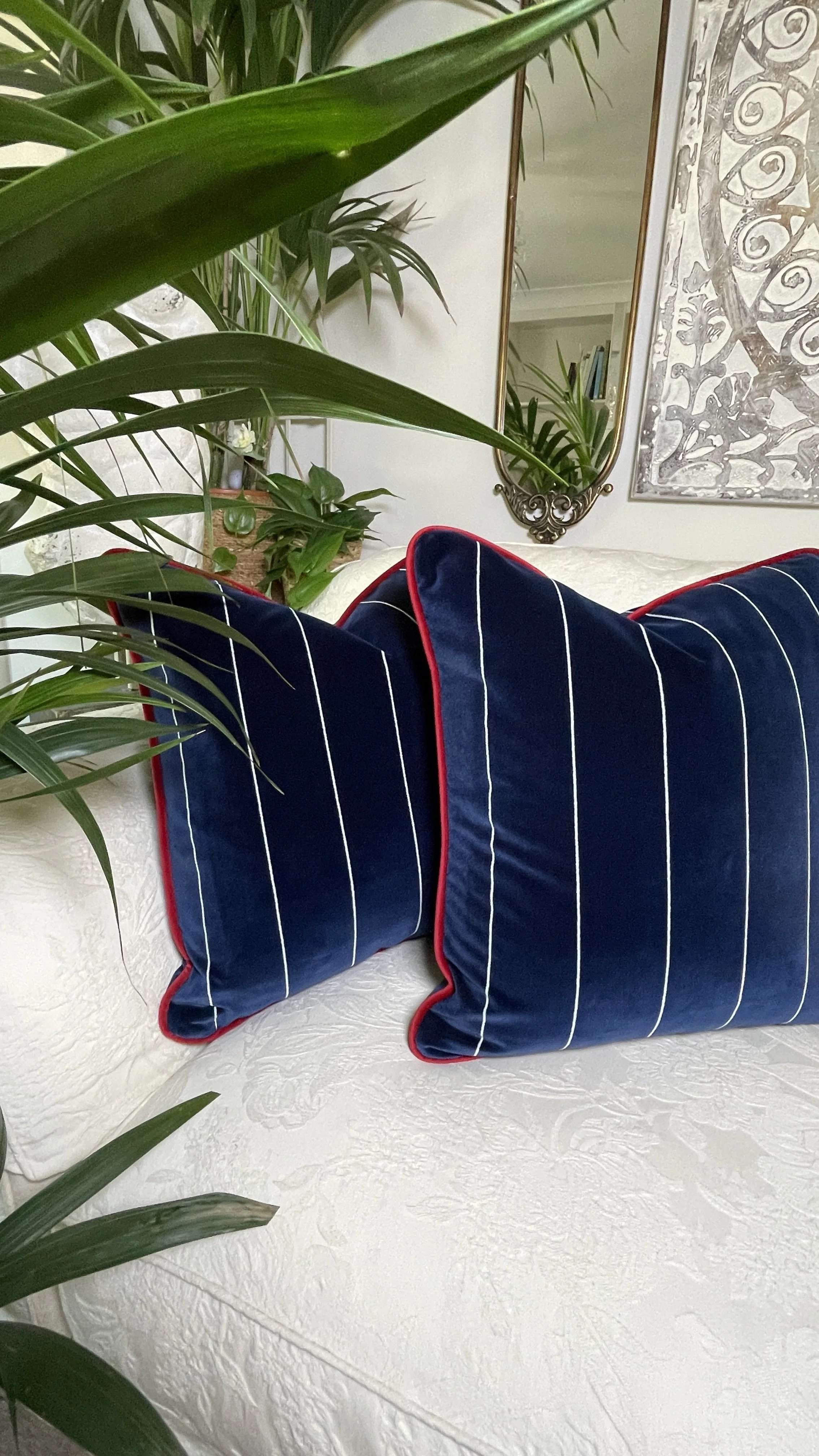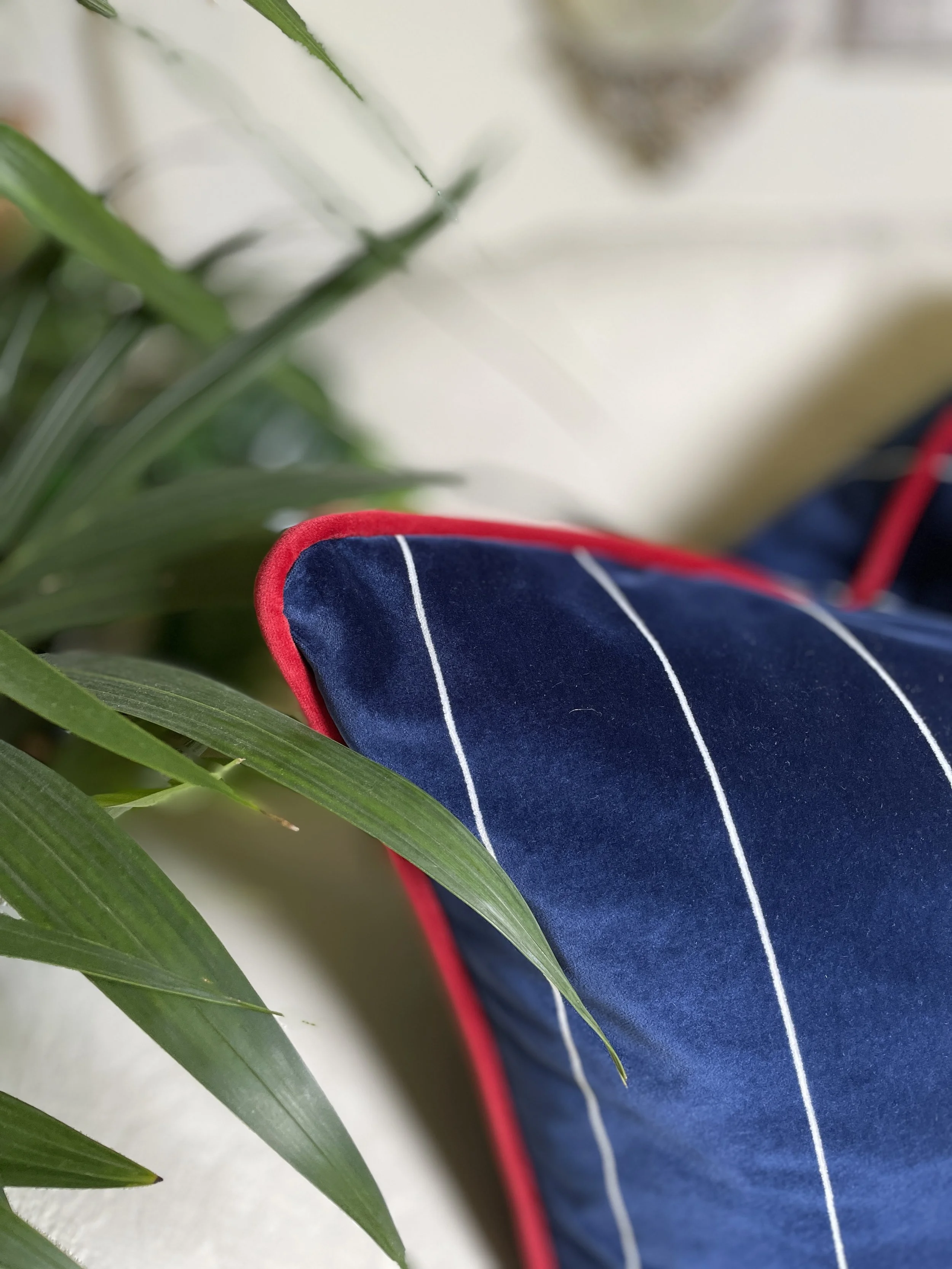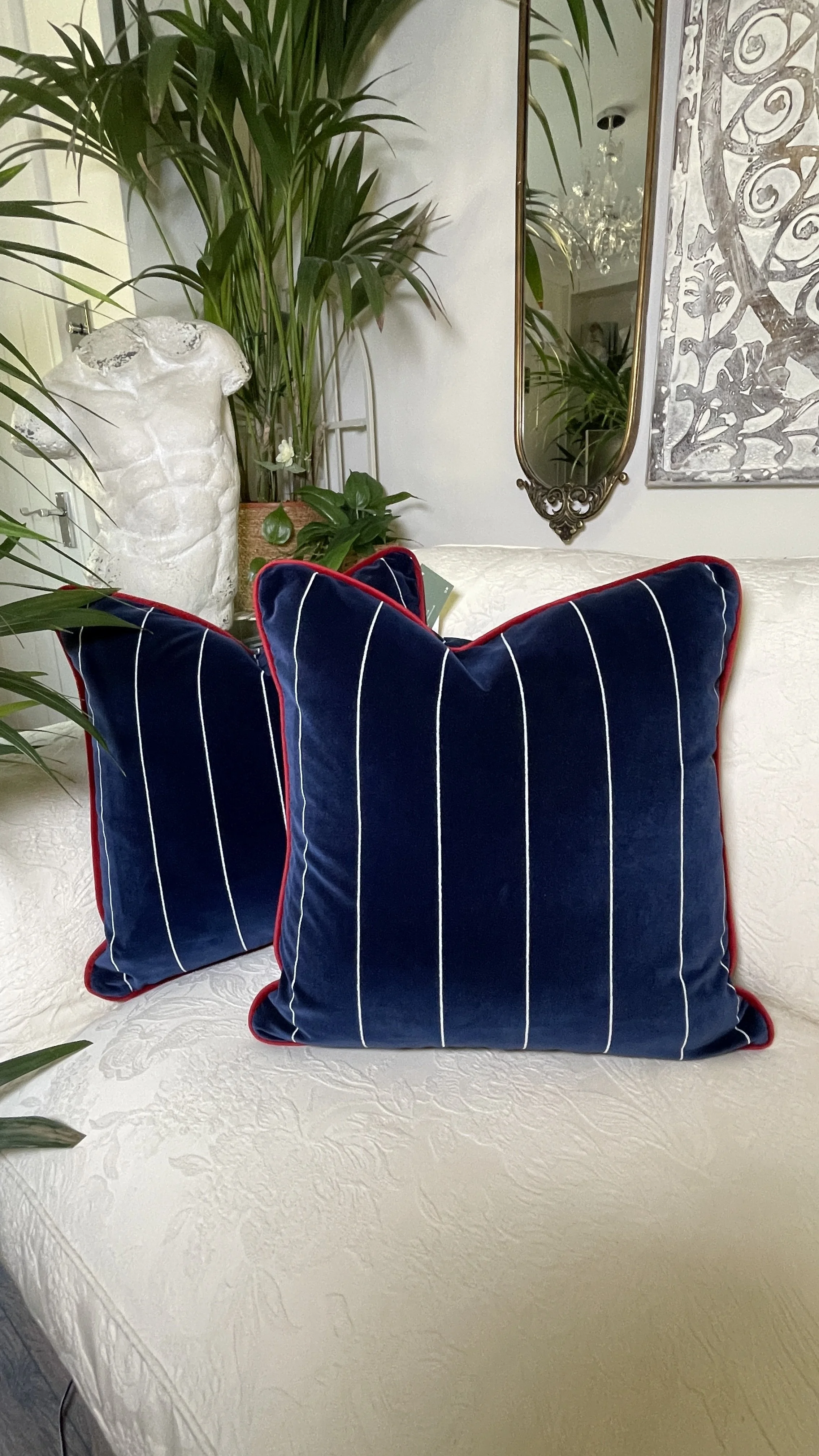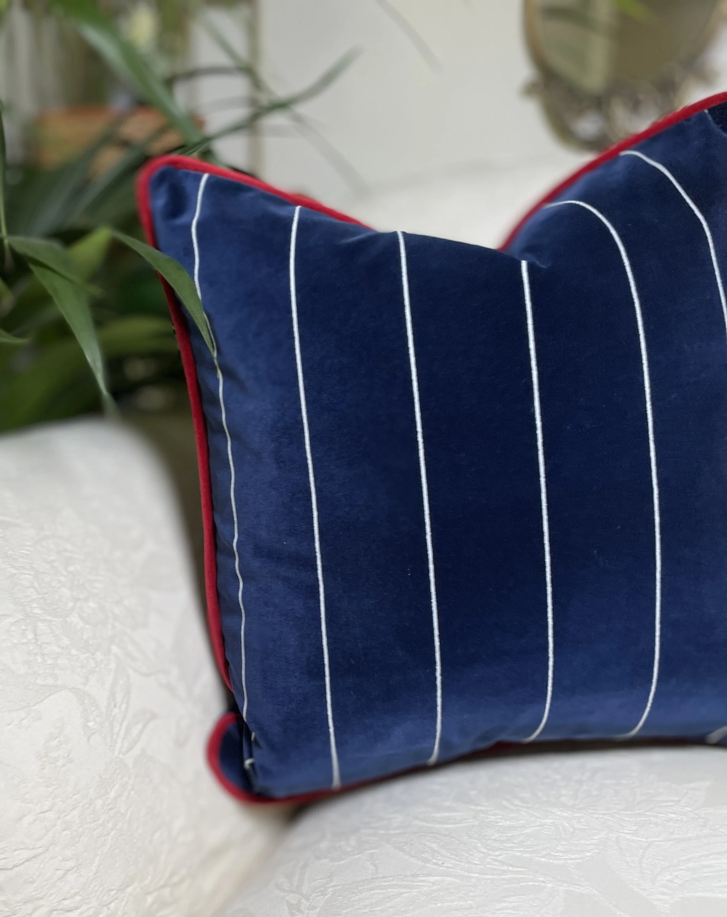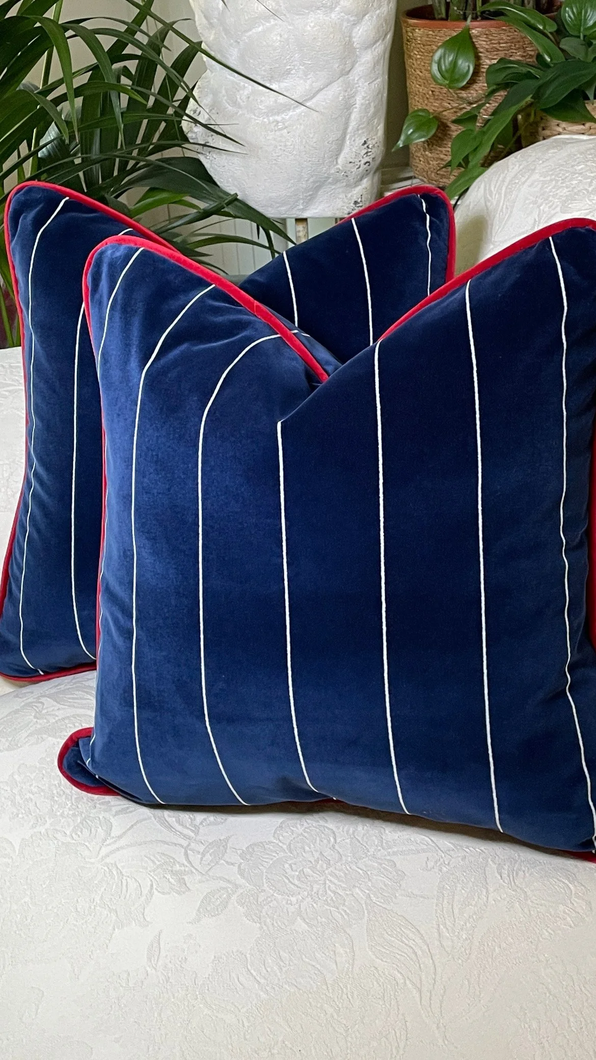 ROMO Eston 'Oxford Blue' Feather Filled Piped & Zipped Cushion (50cm x 50cm)