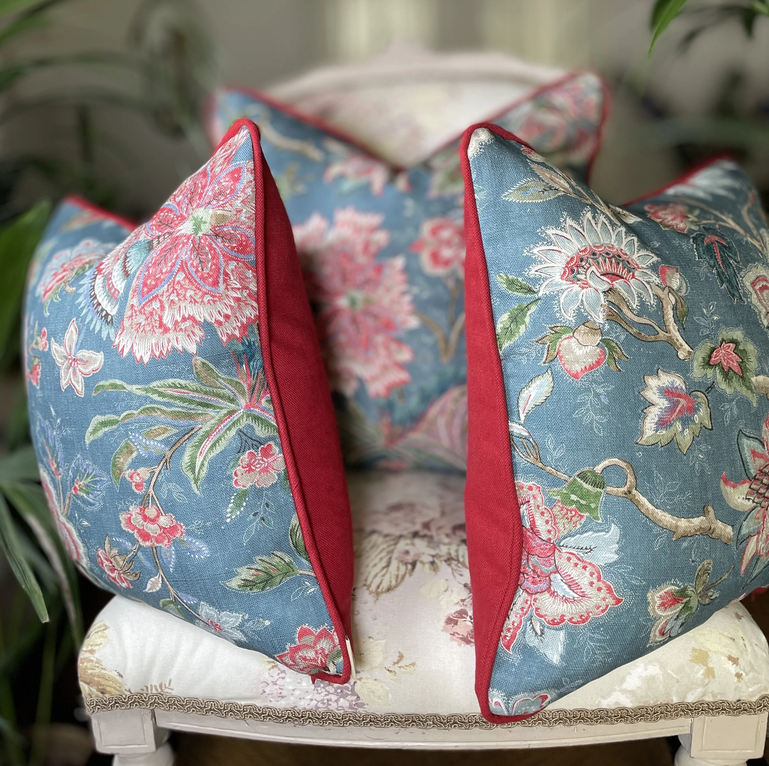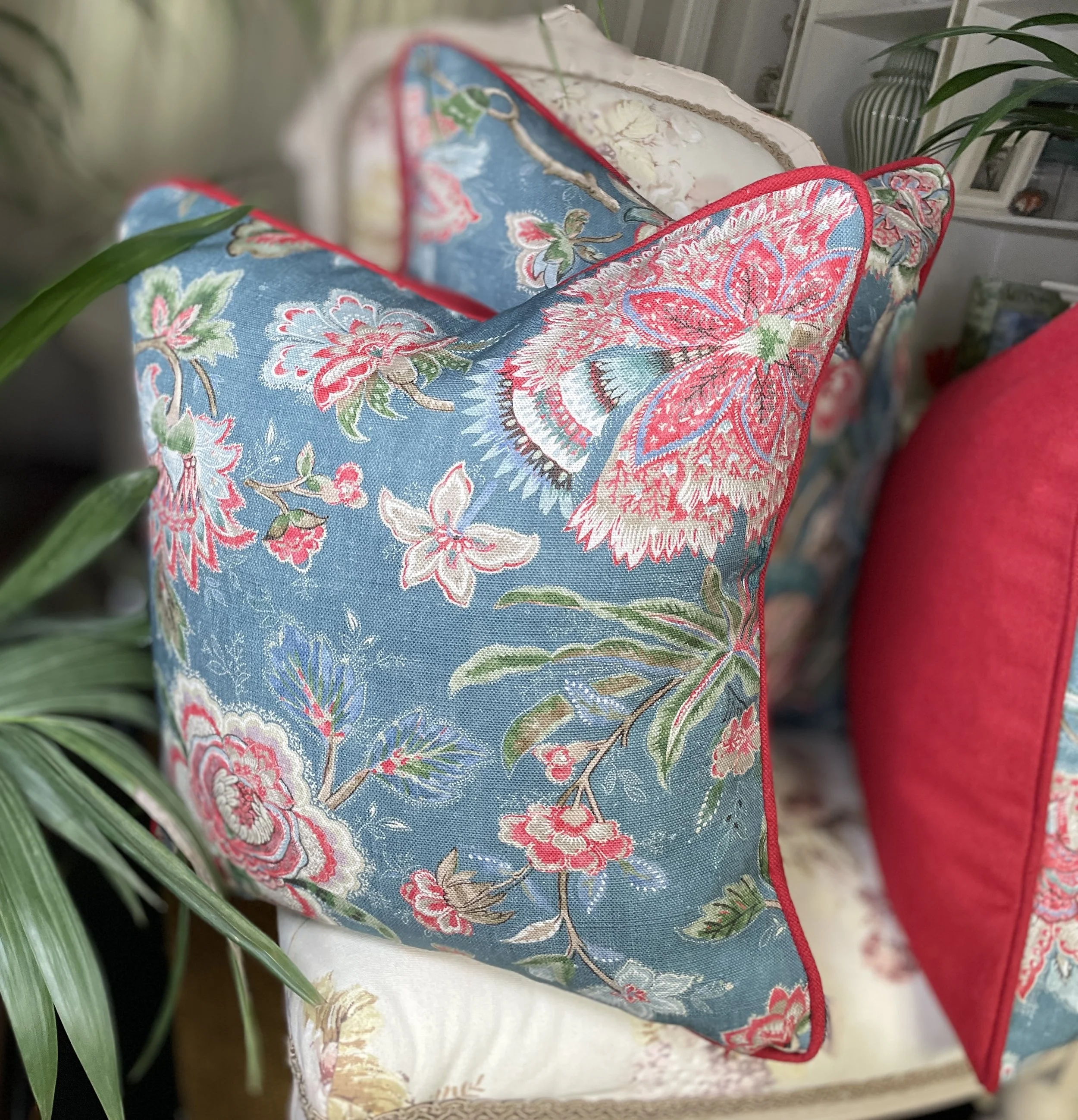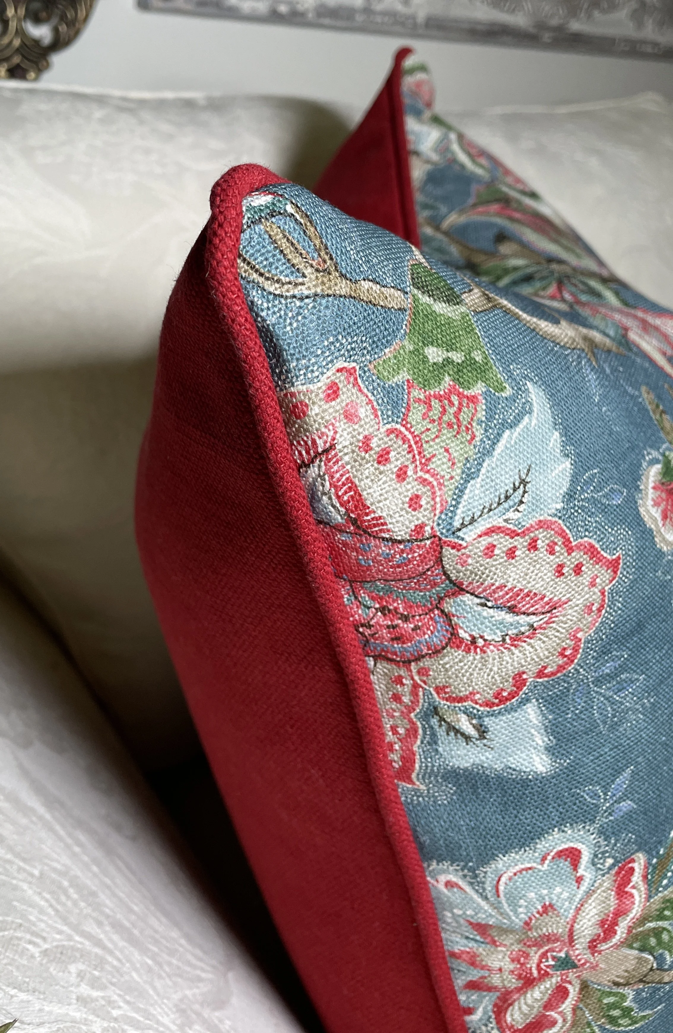 Colefax & Fowler Lismore (Red) 100% linen Feather Filled Cushion 60cm x 60cm