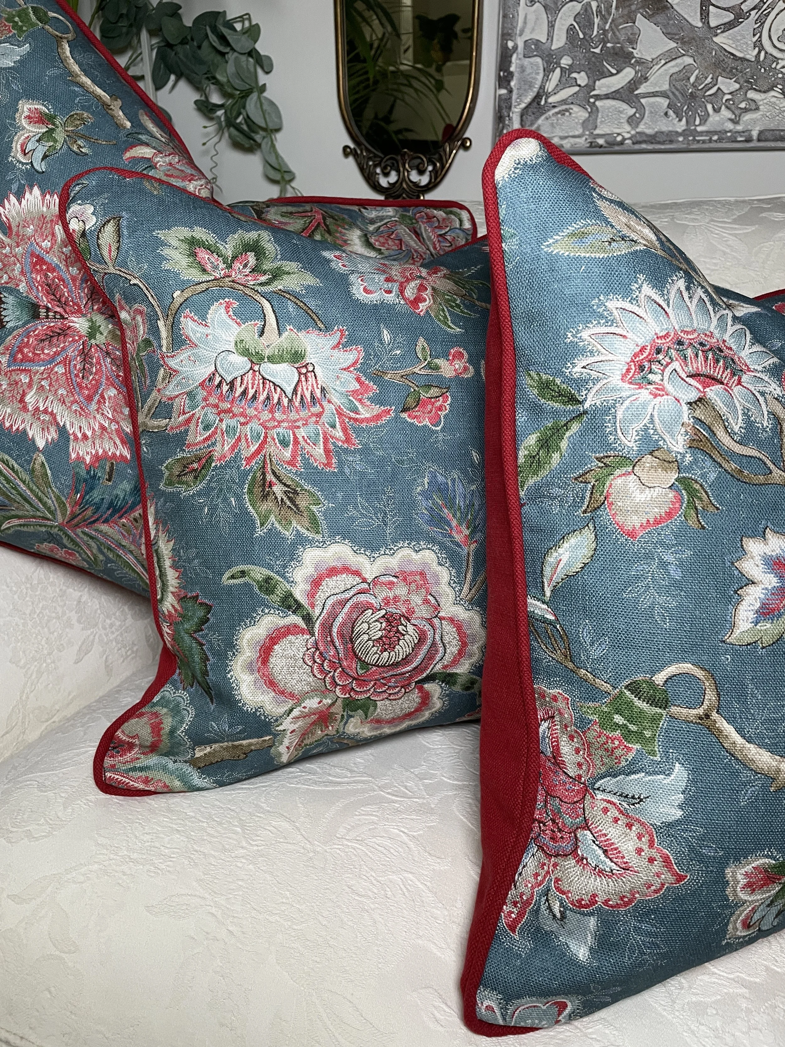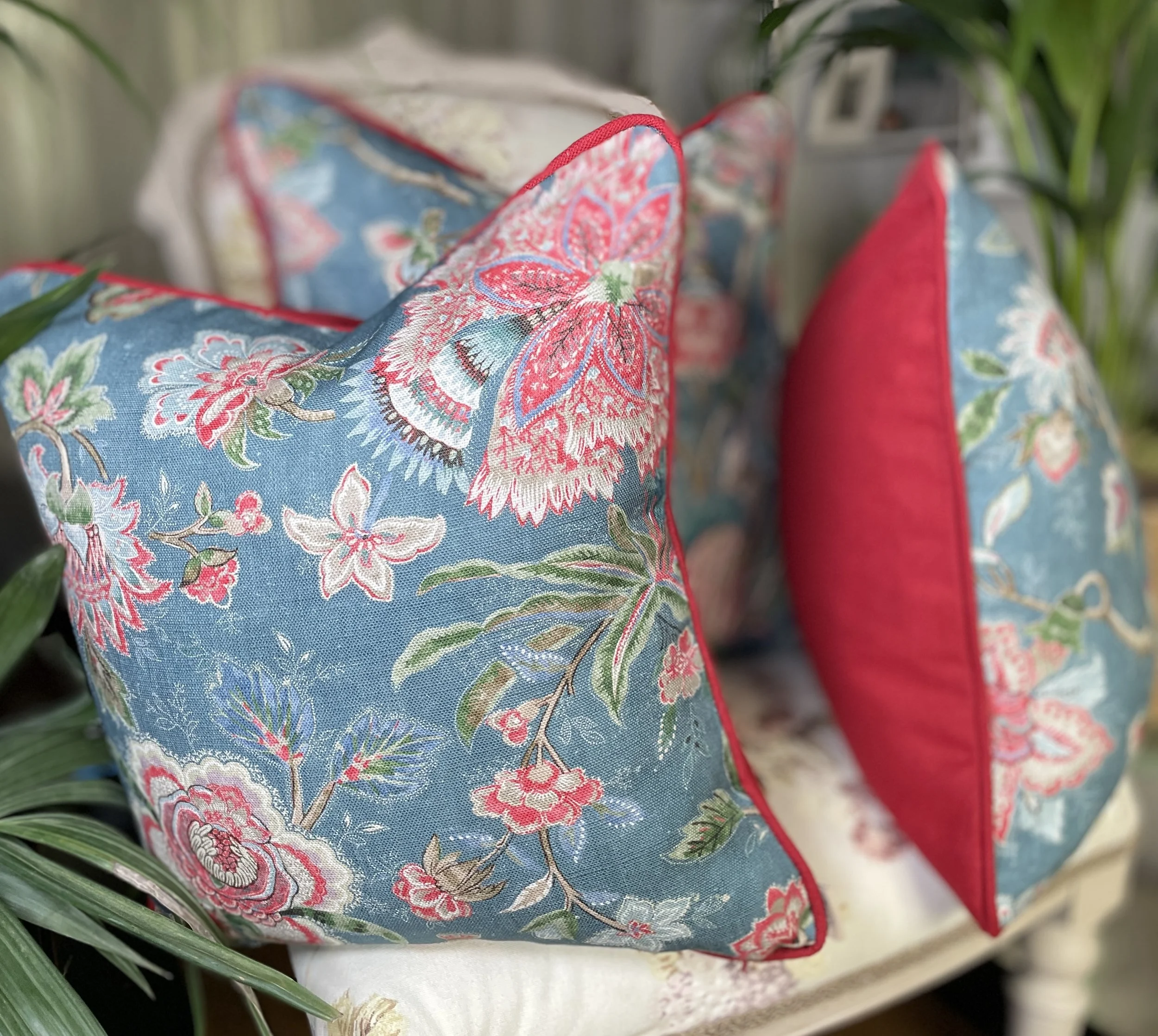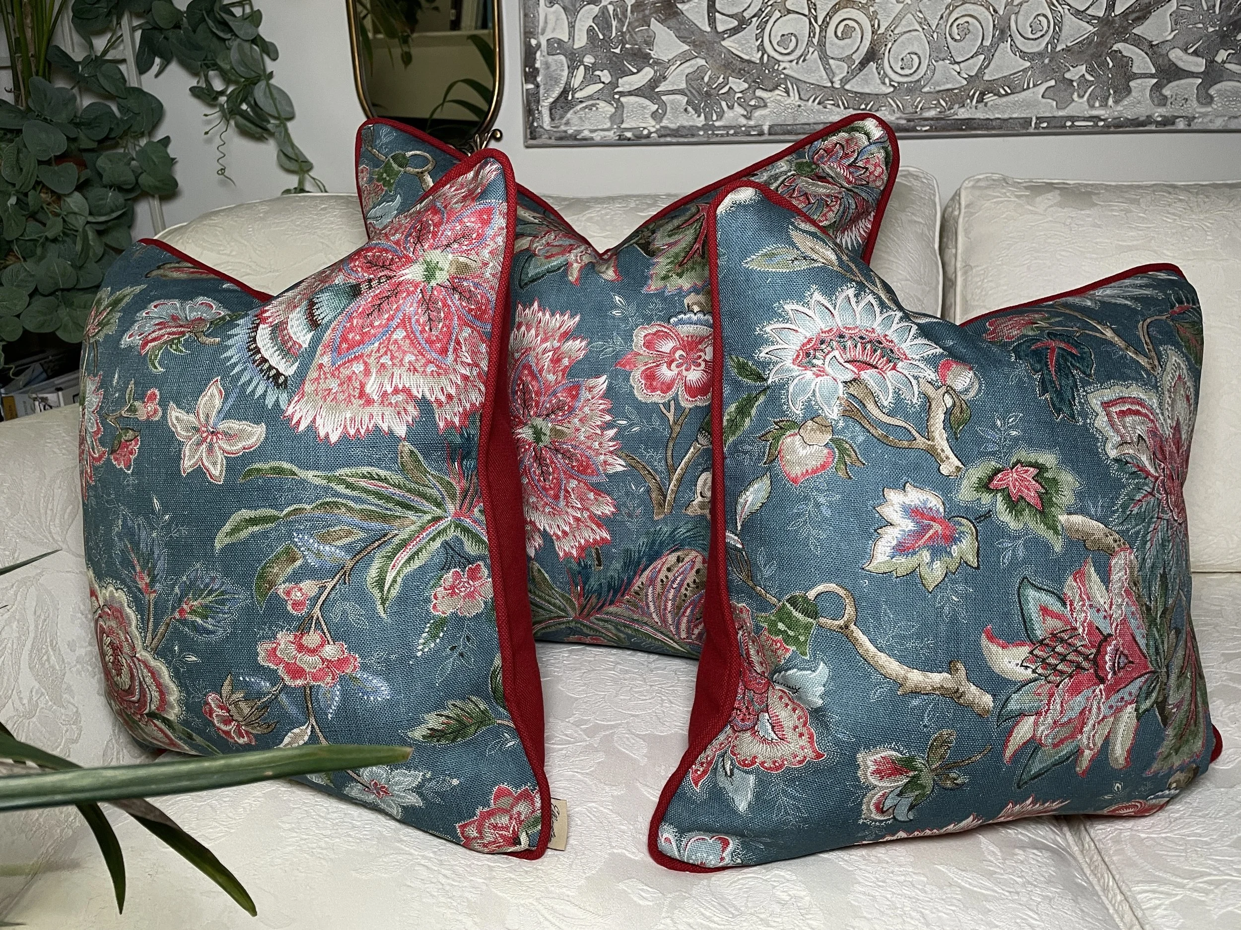 Colefax & Fowler Lismore (Red) 100% linen Feather Filled Cushion 60cm x 60cm