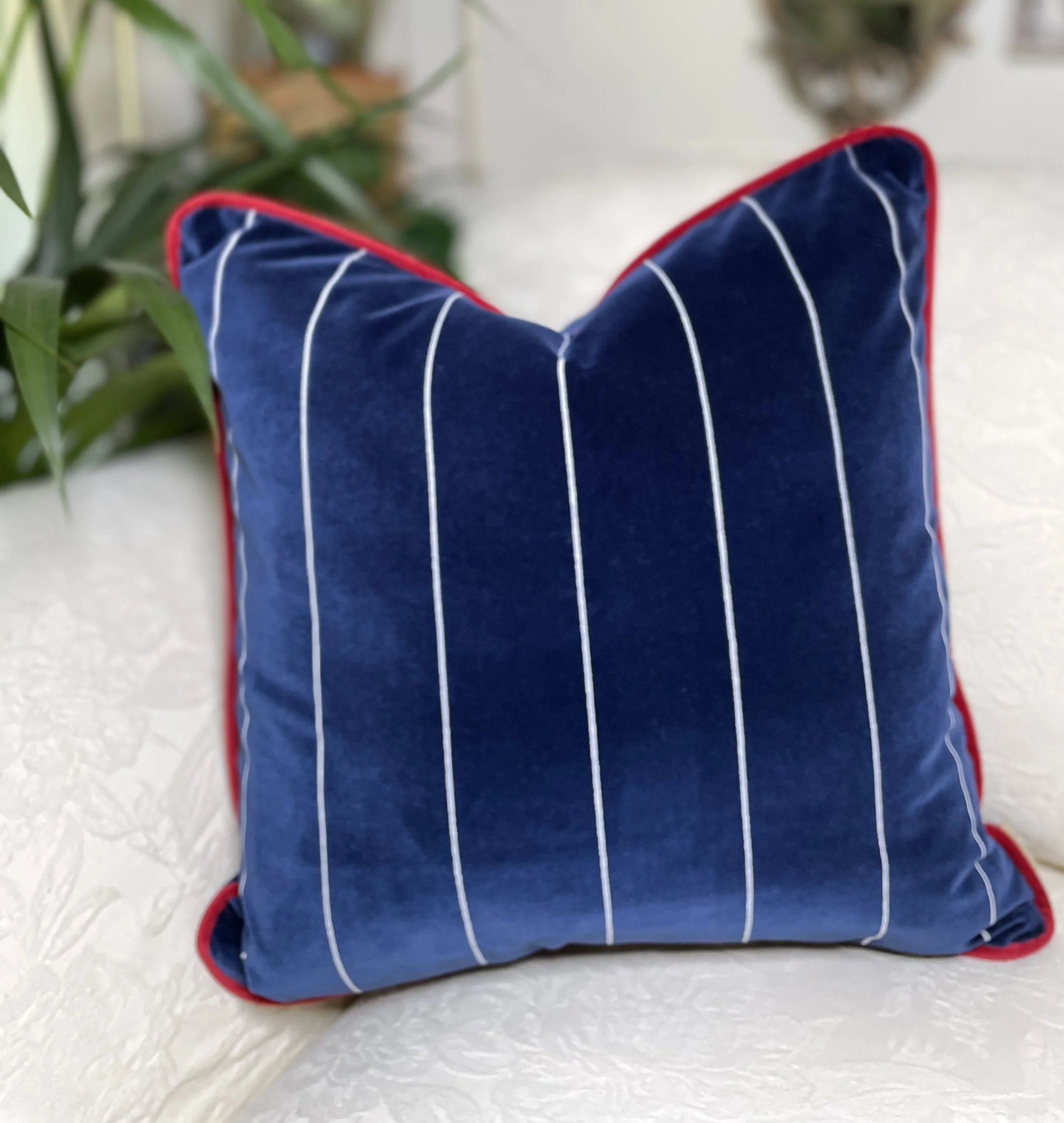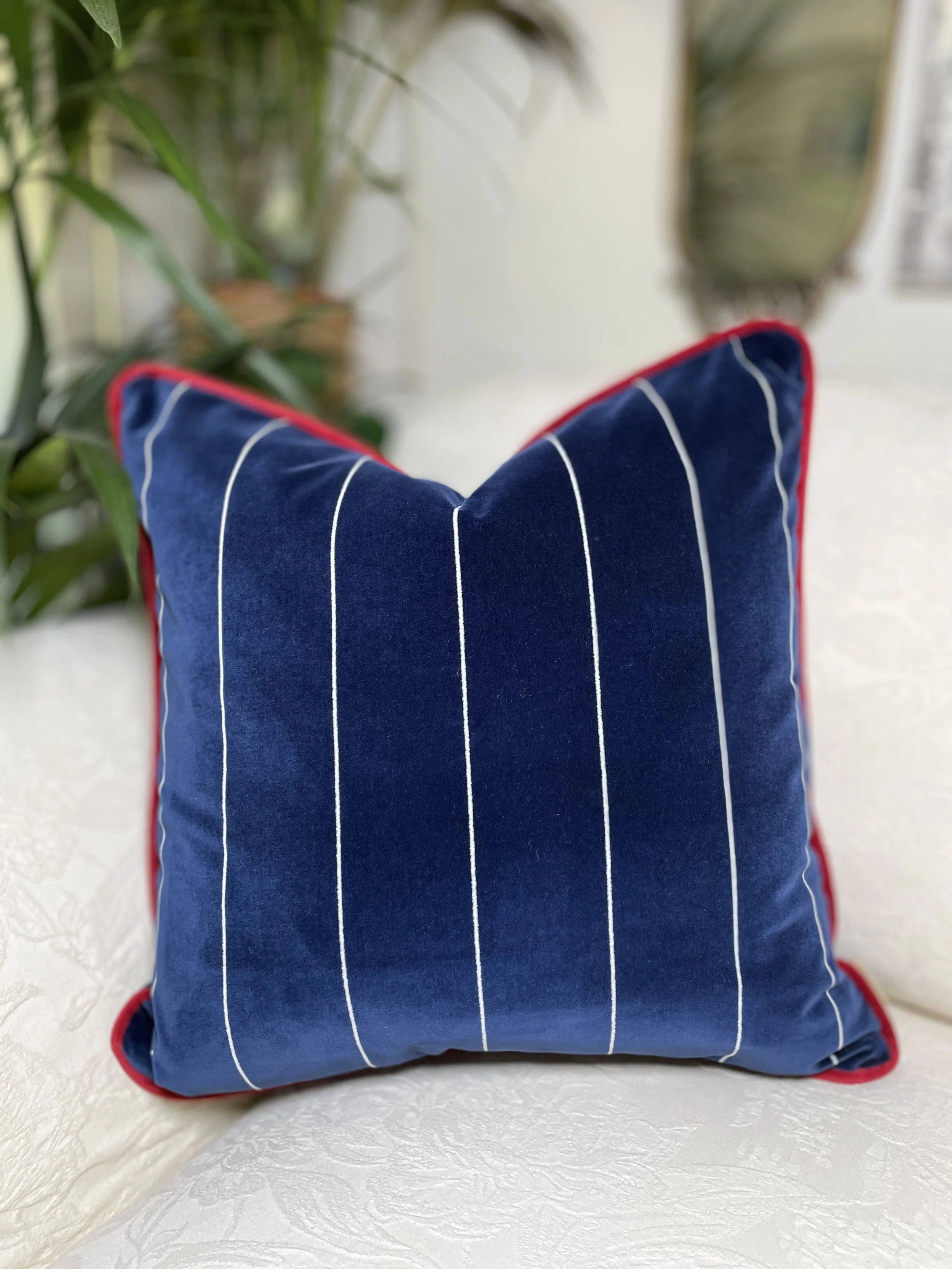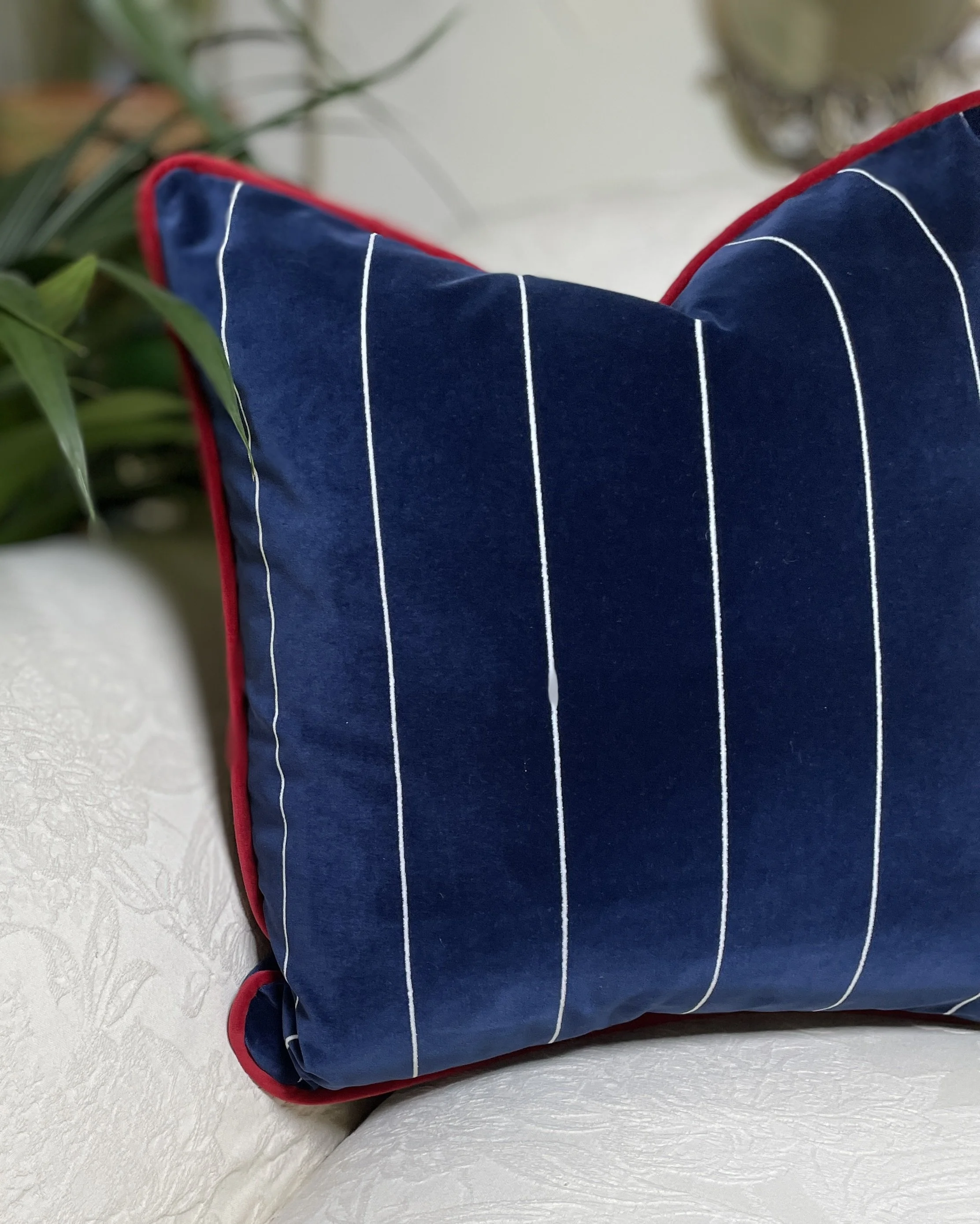 Thibaut Macbeth Blue Piped & Zipped Cushion (55cm 55cm)
